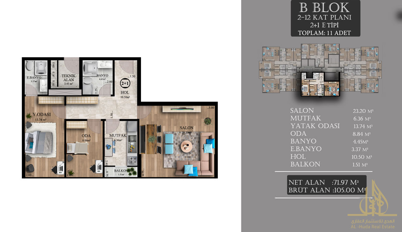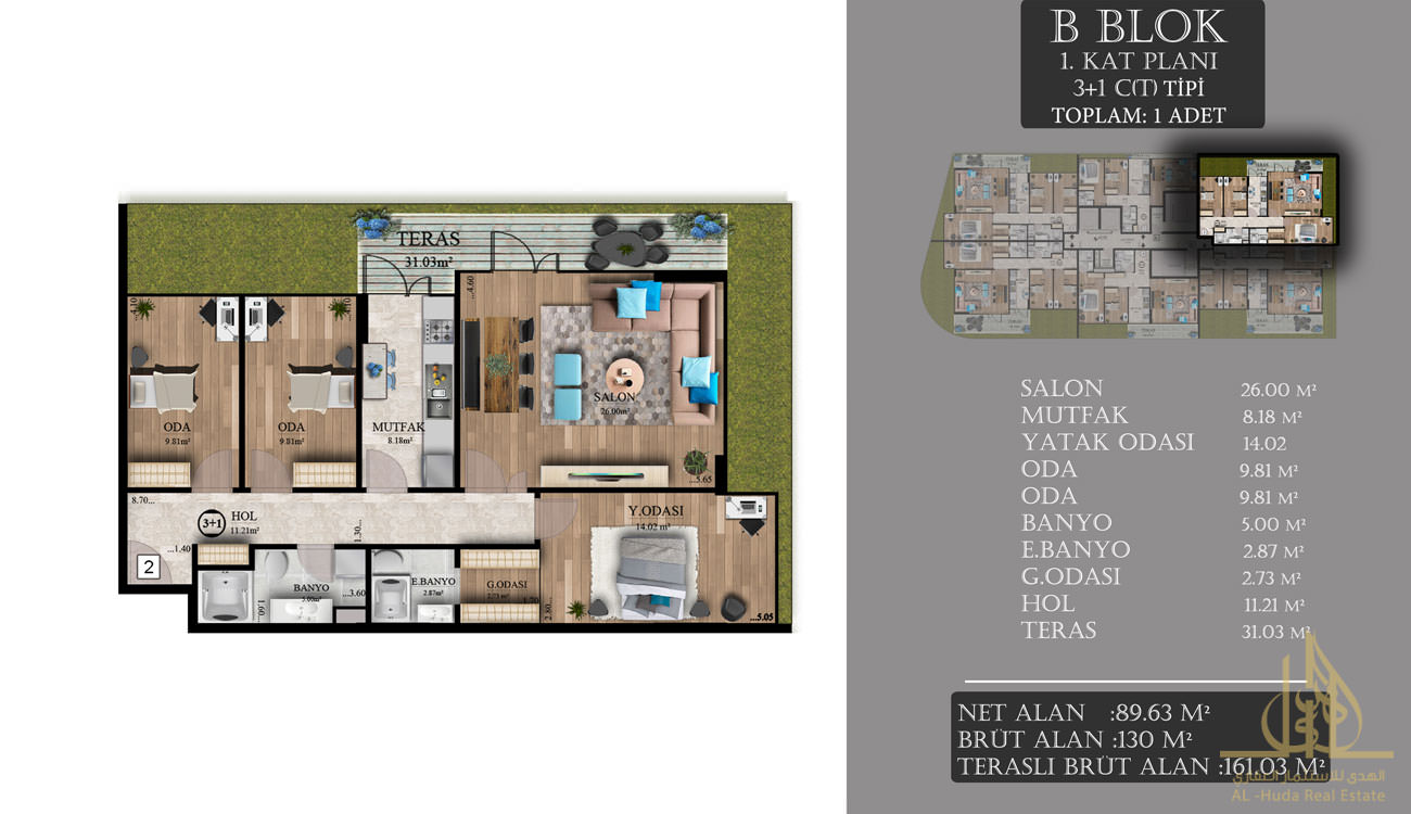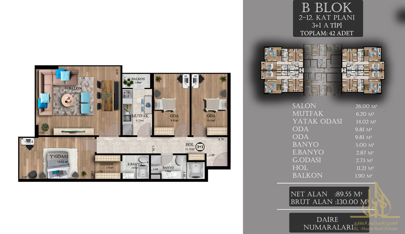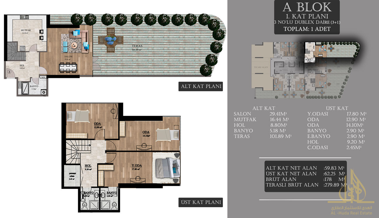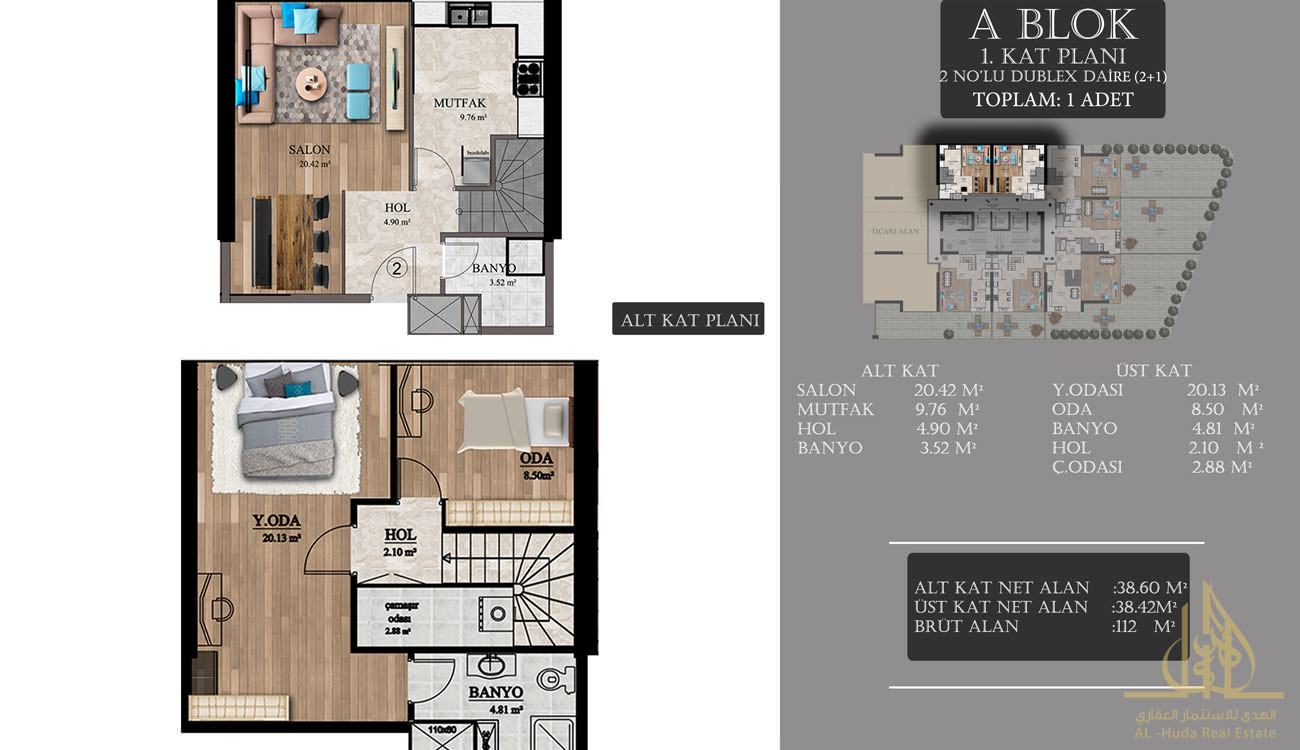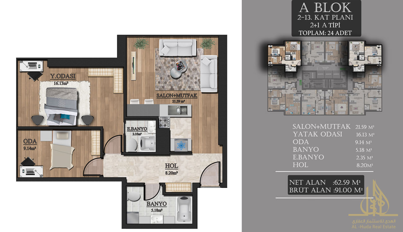 | ALH-303 | 2+1 | 91 | 1,2 | Indoor | 750000 | ₺ |
