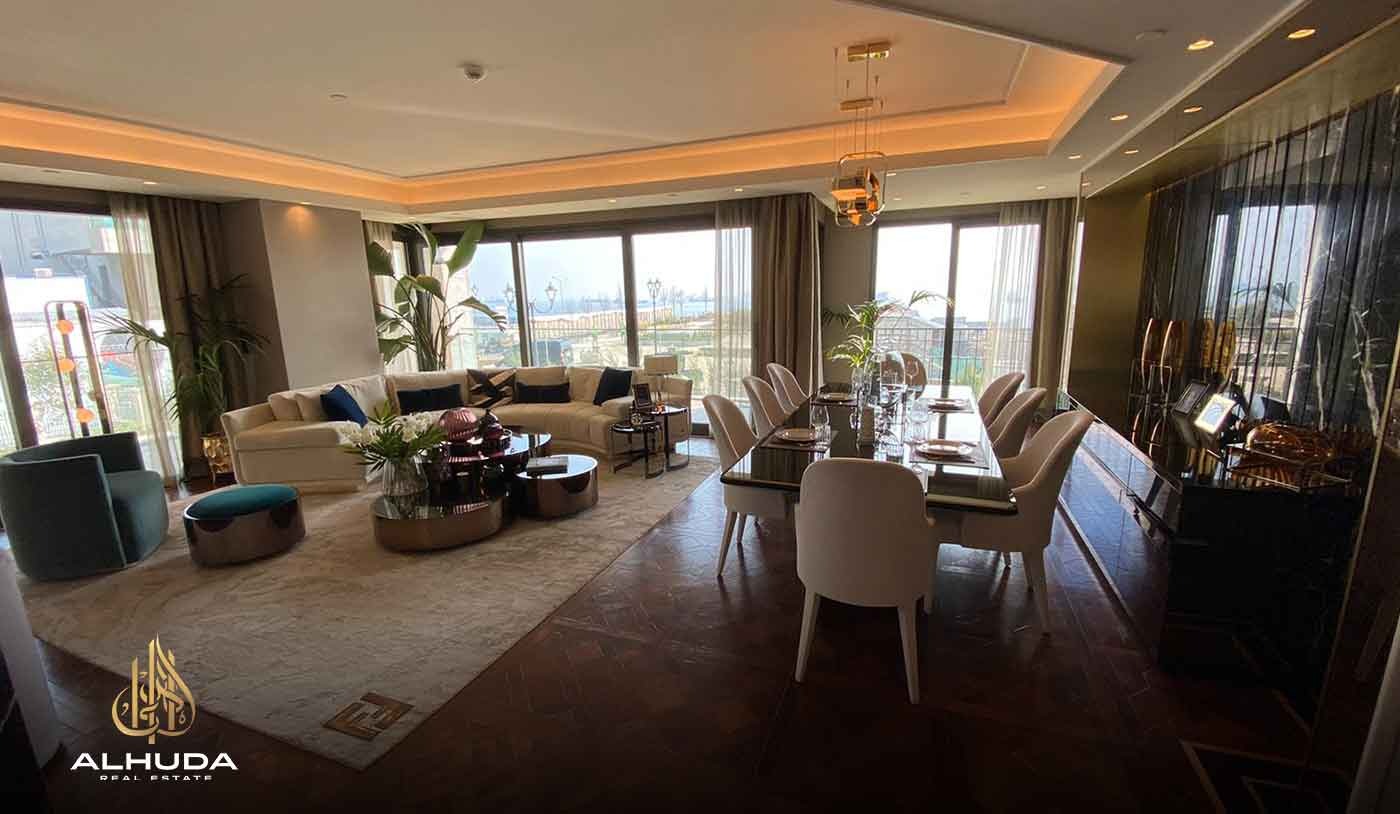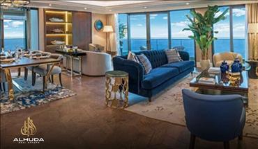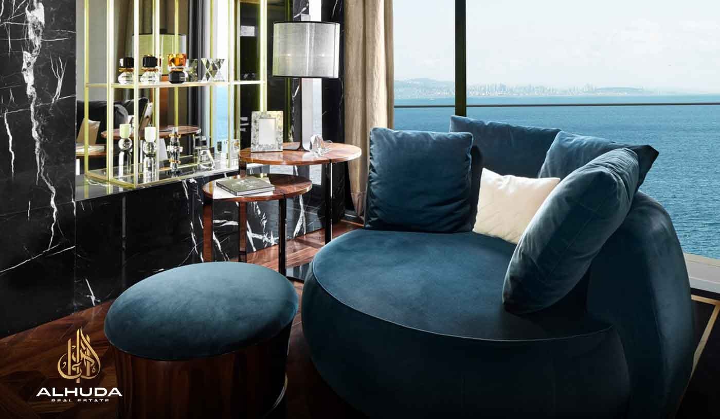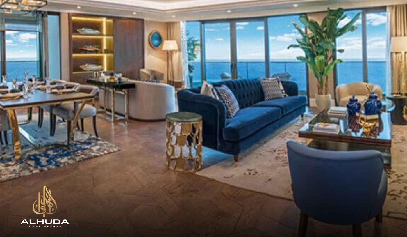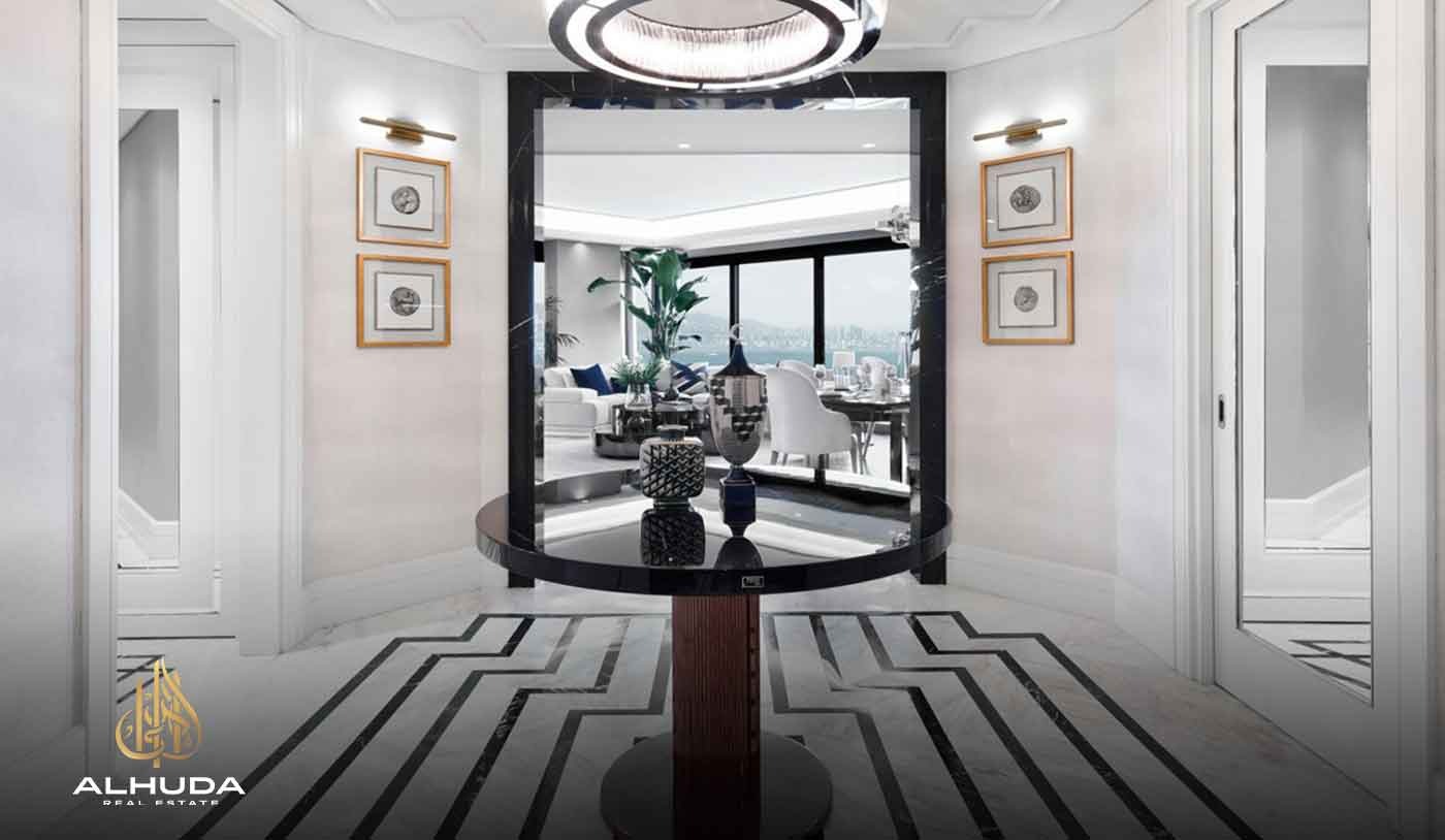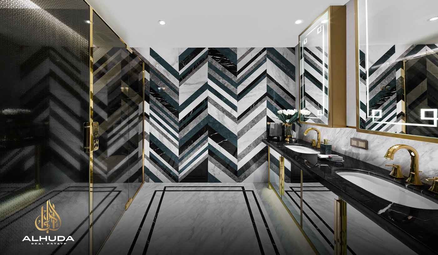 • تشطيبات الشقق العلوية المؤثثة تمت باستعمال الكوارتز الذهبي ، والكوارتز البلاتيني ، والأوبالين الأبيض ، والكريستال الشفاف ما جعلها قمّة في الفخامة والرفاهية .