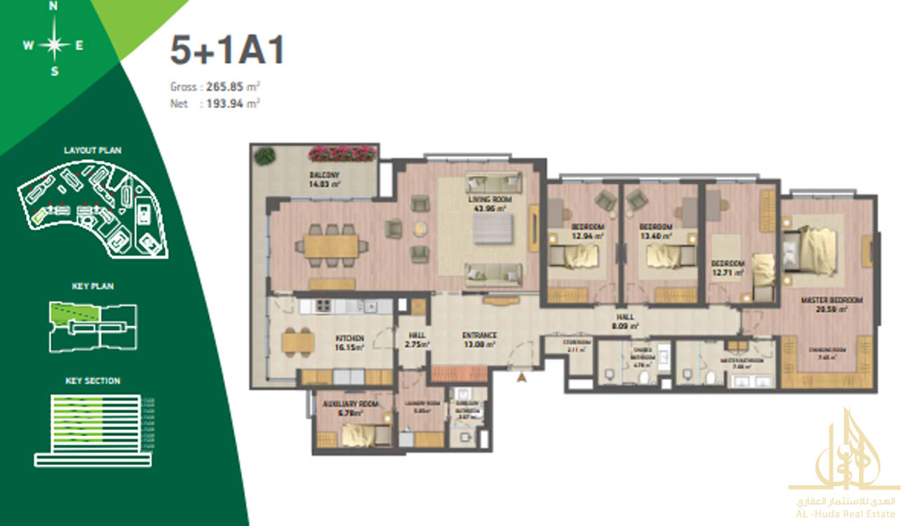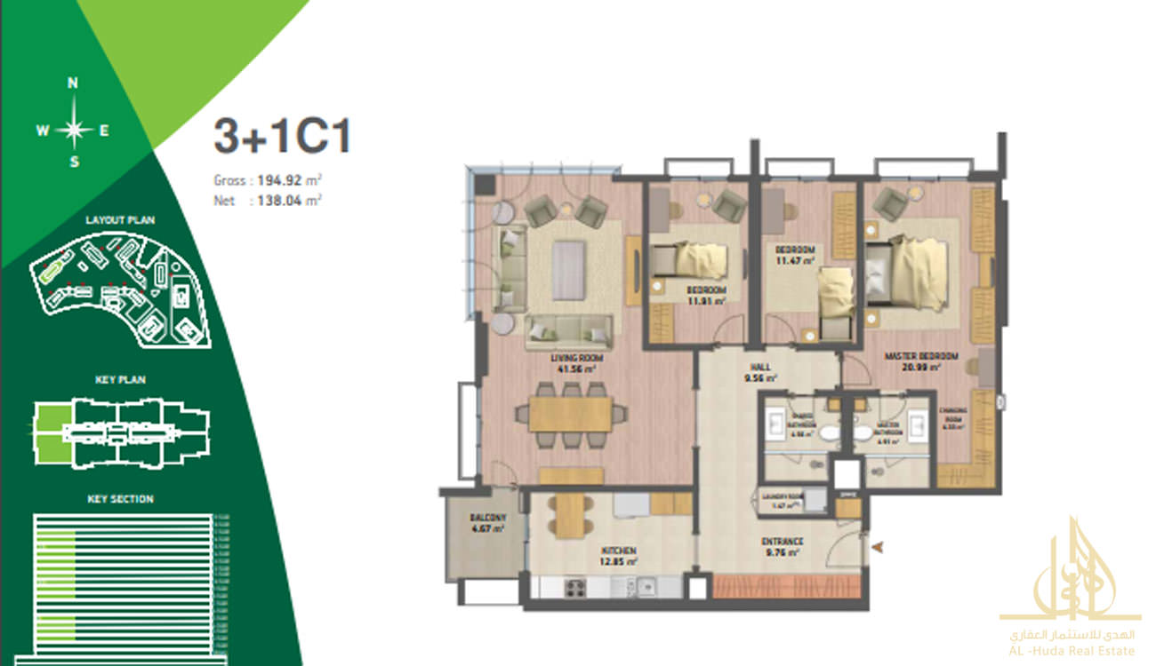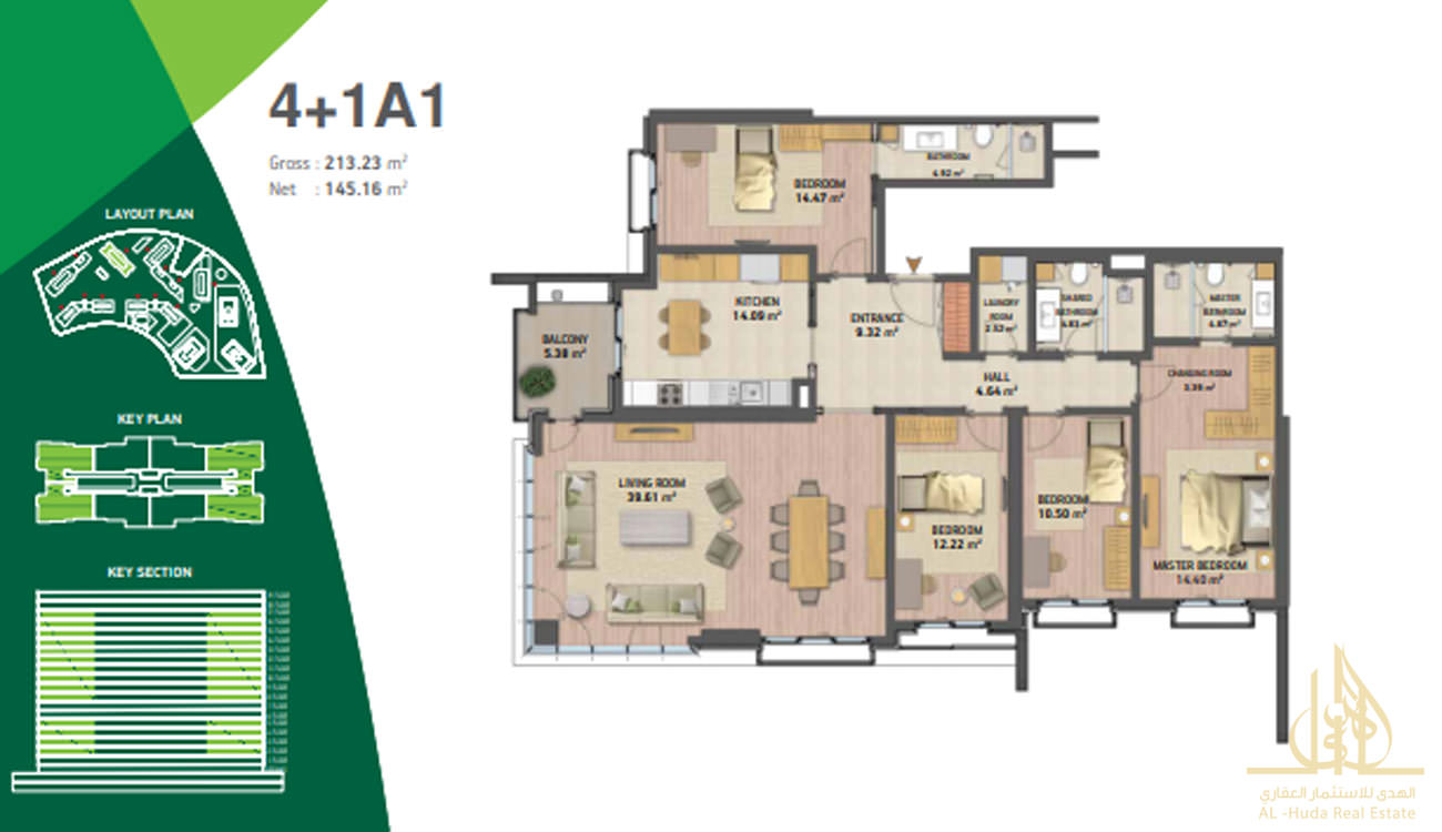 المشروع يتالف من 1915 شقة من النوع 1+1 الى 5+1. وقد تم تأسيس المشروع من 7 كتل سكنية على 51.000 م².