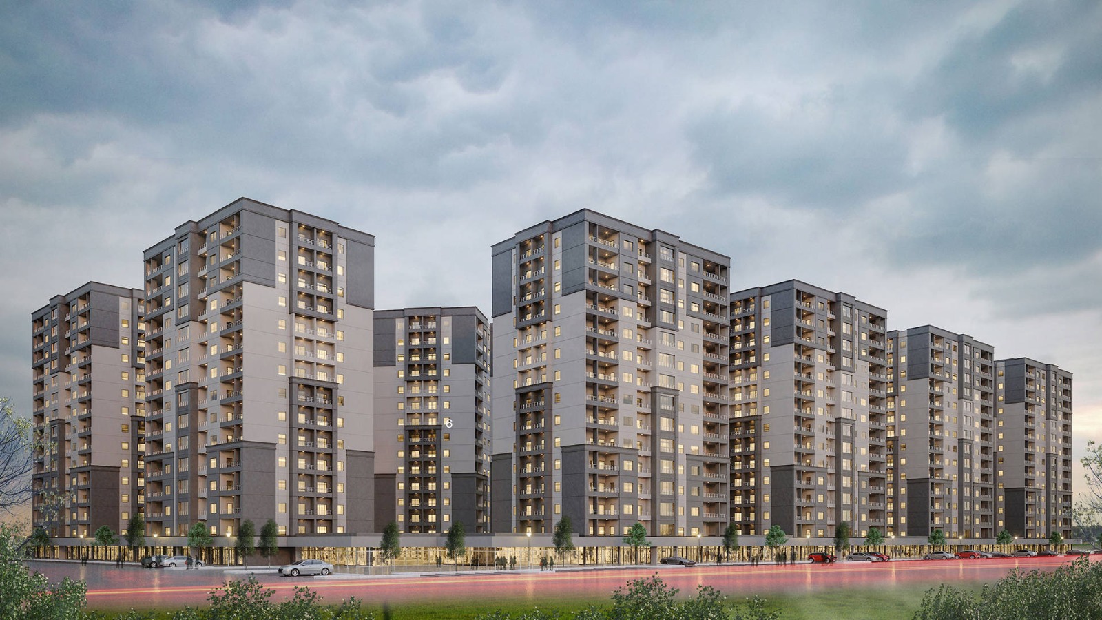 يتكون المشروع من 17 بناء مؤلفة من 13 طابق تضم خيارات شقق