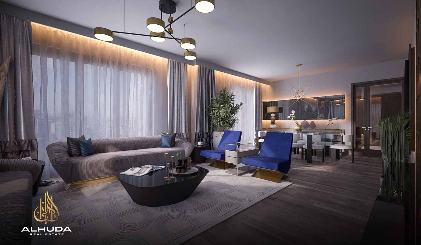يمتد المشروع على مساحة 48.674 متر مربع 60% منها مساحات خضراء ويتألف من 13 بلوك بارتفاعات مختلفة ما بين 4 طوابق و 8 طوابق و 10 طوابق بأنماط مختلفة من الشقق تبدأ من 1+1 حتى 4+1 تتميز بإطلالات رائعة على الوديان المحيطة بالمشروع